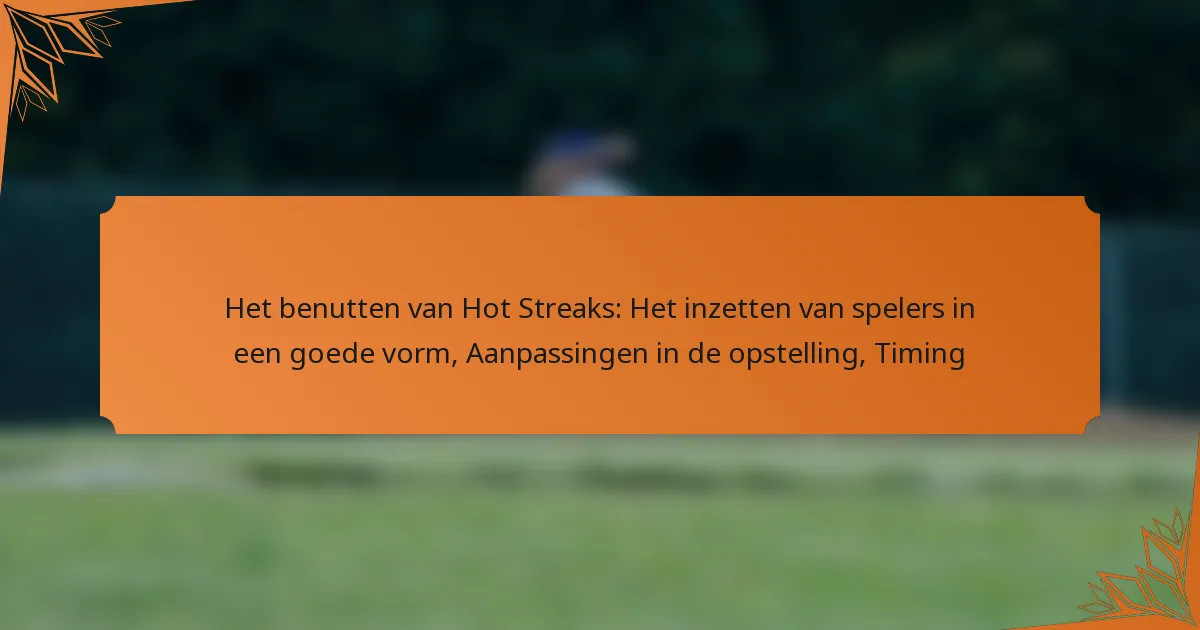 Het benutten van spelers die in een goede vorm verkeren kan een game-changer zijn voor elk team, aangezien hun verhoogde prestaties kunnen leiden tot verbeterde algehele resultaten. Door strategische aanpassingen in de opstelling te maken en hun inzet te timen op basis van gunstige matchups, kunnen coaches profiteren van deze momentum om de teamdynamiek en het succes te verbeteren. Het herkennen van de indicatoren van een speler op zijn piekniveau is essentieel om hun impact tijdens kritieke momenten te maximaliseren.